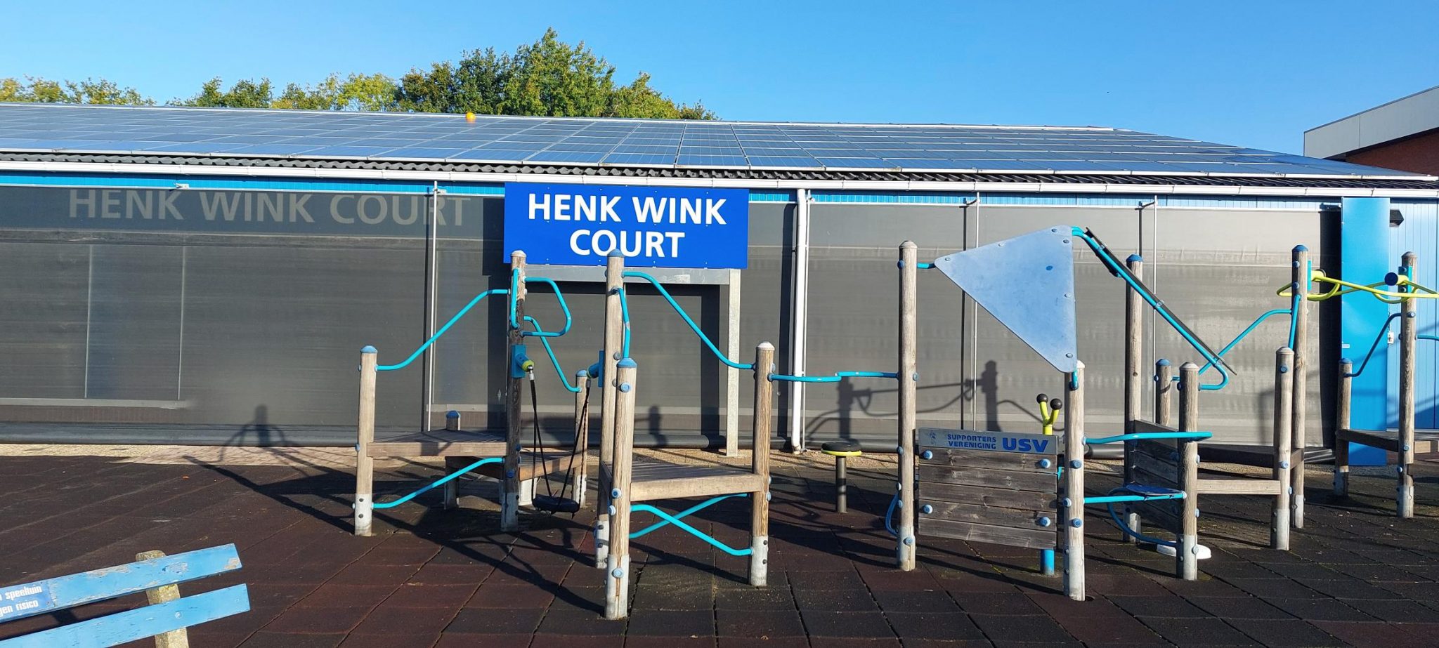 Een weekend eerder werden er grote stappen gemaakt met de aanleg van kunstgras in het Henk Wink Court. Sinds een groot gordijn bij guur weer de wind buiten de deur houdt, werd de naam van dit overdekte voetbalpaleis grotendeels aan het zicht onttrokken. Dankzij een nieuwe constructie is ook dit weer vakkundig opgelost. Ere wie ere toekomt!